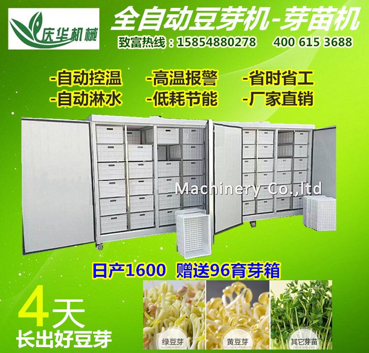 1)我公司生產的全自動綠色無污染豆芽機,是現(xiàn)代技術與傳統(tǒng)工藝的結合。豆芽機通過微電腦自動控溫、自動加溫、自動顯示溫度、自動淋水,實現(xiàn)了生產過程的全自動化,具有省時、省工、低耗、無噪音等特點。